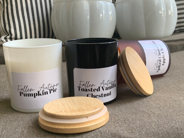 Snuggle up with these comfy, cozy fragrances in our gorgeous amber, white, and black 10oz. and 9oz. vessels!